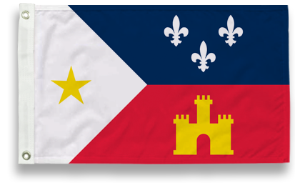 Excellent for indoor or outdoor use, Our Acadiana Miniature Flags are made from sturdy 250 denier polynex. Each flag is attached to it's staff via pole hem not stapled, giving the flag a much richer look. Your flag comes mounted on a natural wood 30"x5/16" staff with a gold spear.