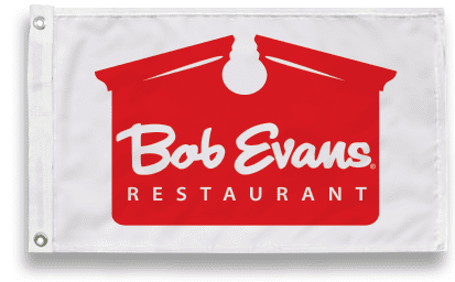 Our Bob Evans Flag is expertly crafted using heavy weight, 250 Denier Polynex. Each flag is made using eco-friendly inks which not only helps the environment but it also assists in combating the effects of sun and chemical deterioration. All seams are double stitched and fly ends have 4 rows of stitching for added durability. All flags are finished with heavy-duty, no-shrink white header.
