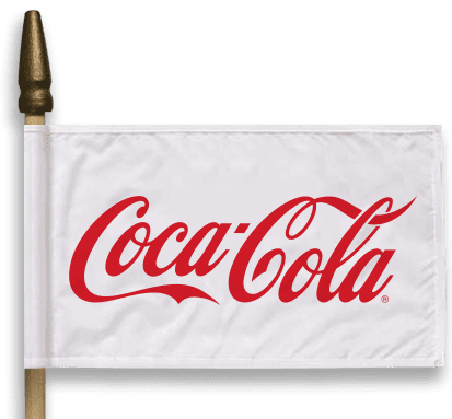 Excellent for indoor or outdoor use, Our Coca-Cola Miniature Flags are made from sturdy 250 denier polynex. Each flag is attached to it's staff via pole hem not stapled, giving the flag a much richer look. Your flag comes mounted on a natural wood 30"x5/16" staff with a gold spear.