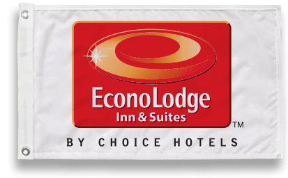 Our Econo Lodge Hotel Flag is expertly crafted using heavy weight, 250 Denier Polynex. Each flag is made using eco-friendly inks which not only helps the environment but it also assists in combating the effects of sun and chemical deterioration. All seams are double stitched and fly ends have 4 rows of stitching for added durability. All flags are finished with heavy-duty, no-shrink white header.