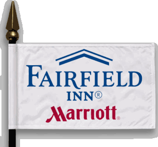 Excellent for indoor or outdoor use, Our Fairfield Inn Miniature Flags are made from sturdy 250 denier polynex. Each flag is attached to it's staff via pole hem not stapled, giving the flag a much richer look. Your flag comes mounted on a black plastic 10"x3/16" staff with a gold spear.