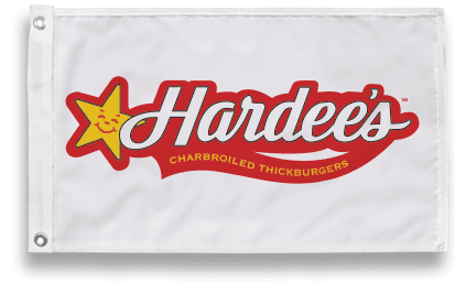 Our Hardee's Flag is expertly crafted using heavy weight, 250 Denier Polynex. Each flag is made using eco-friendly inks which not only helps the environment but it also assists in combating the effects of sun and chemical deterioration. All seams are double stitched and fly ends have 4 rows of stitching for added durability. All flags are finished with heavy-duty, no-shrink white header.