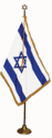 Our Deluxe Israel Flag Set includes a fully sewn, gold fringed nylon Israel flag with gold cord & tassel, 2 piece pole with brass screw joint, brass plated metal Star of David and gold anodized endura floor stand. By far, these sets set the standard for quality.