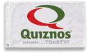 Our Quiznos Flag is expertly crafted using heavy weight, 250 Denier Polynex. Each flag is made using eco-friendly inks which not only helps the environment but it also assists in combating the effects of sun and chemical deterioration. All seams are double stitched and fly ends have 4 rows of stitching for added durability. All flags are finished with heavy-duty, no-shrink white header.