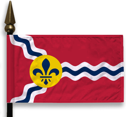 Excellent for indoor or outdoor use, Our St. Louis, Missouri Miniature Flags are made from sturdy 250 denier polynex. Each flag is attached to it's staff via pole hem not stapled, giving the flag a much richer look. Your flag comes mounted on a black plastic 10"x3/16" staff with a gold spear.