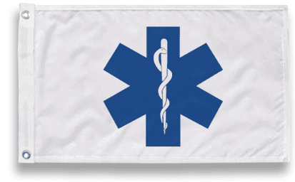 Our Star Of Life Flag is expertly crafted using heavy weight, 250 Denier Polynex. Each flag is made using eco-friendly inks which not only helps the environment but it also assists in combating the effects of sun and chemical deterioration. All seams are double stitched and fly ends have 4 rows of stitching for added durability. All flags are finished with heavy-duty, no-shrink white header.