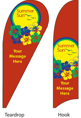 This feather flag can be ordered as a flag only or as a set. Size below reflects overall size of set with 30" of exposed pole.