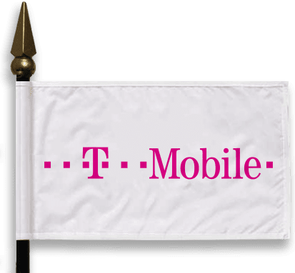 Excellent for indoor or outdoor use, Our T-Mobile Miniature Flags are made from sturdy 250 denier polynex. Each flag is attached to it's staff via pole hem not stapled, giving the flag a much richer look. Your flag comes mounted on a black plastic 10"x3/16" staff with a gold spear.