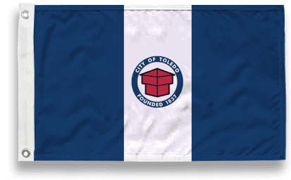 Excellent for both Outdoor or Indoor use our Toledo, Ohio Flags are expertly crafted using heavy weight, 250 Denier Polynex. Each flag is made using eco-friendly inks which not only helps the environment but it also assists in combating the effects of sun and chemical deterioration. All seams are double stitched and fly ends have 4 rows of stitching for added durability. All flags are finished with heavy-duty, no-shrink white header.