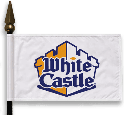 Excellent for indoor or outdoor use, Our White Castle Miniature Flags are made from sturdy 250 denier polynex. Each flag is attached to it's staff via pole hem not stapled, giving the flag a much richer look. Your flag comes mounted on a black plastic 10"x3/16" staff with a gold spear.
